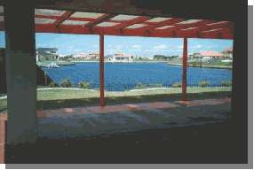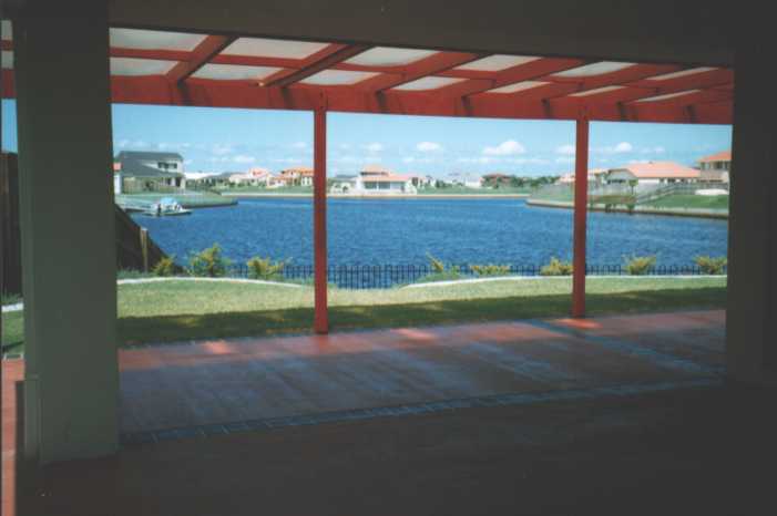 The canal from beneath the pergola, home to some fine Queensland mud crabs.